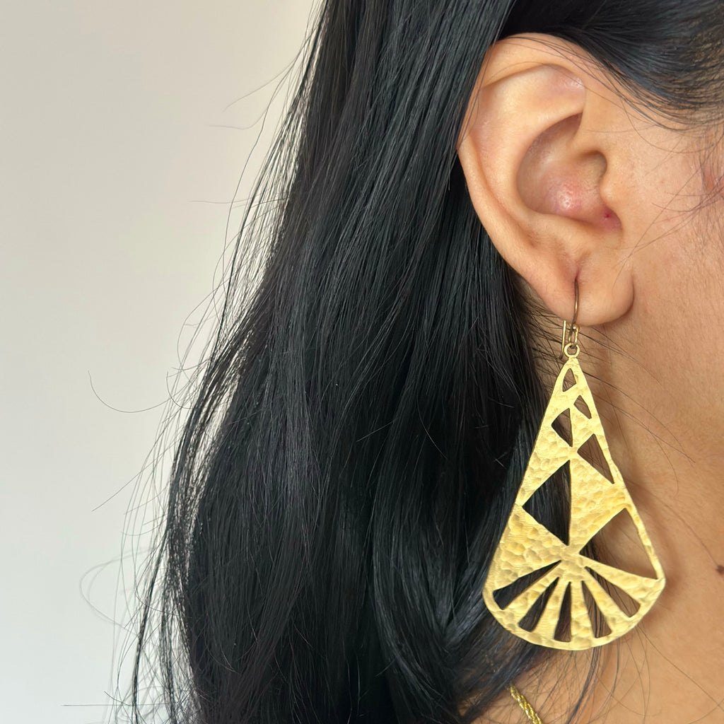 Hammered graphic cut-out brass earrings, great graphic style. These earrings are handmade in Peru.
